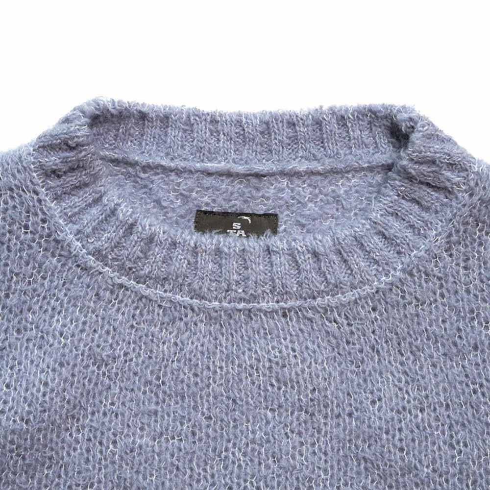 AYUKANをベースに、通常のROARとは違う製法で「Octa®糸に全長1cmほどのウール糸を無数に絡めた特殊糸」を作成。ウール糸には毛足が短く、膨らみと嵩高さに優れたフレンチメリノ主のウールを使用し、暖かさ、軽さ、熱抜け感のバランスを意識した粗めのニットに仕上げています。製造の最終工程ではプレシュリンク加工を施し、各ウール糸が絡まり合うことで、繊維抜け防止と耐摩耗強度を高めました。