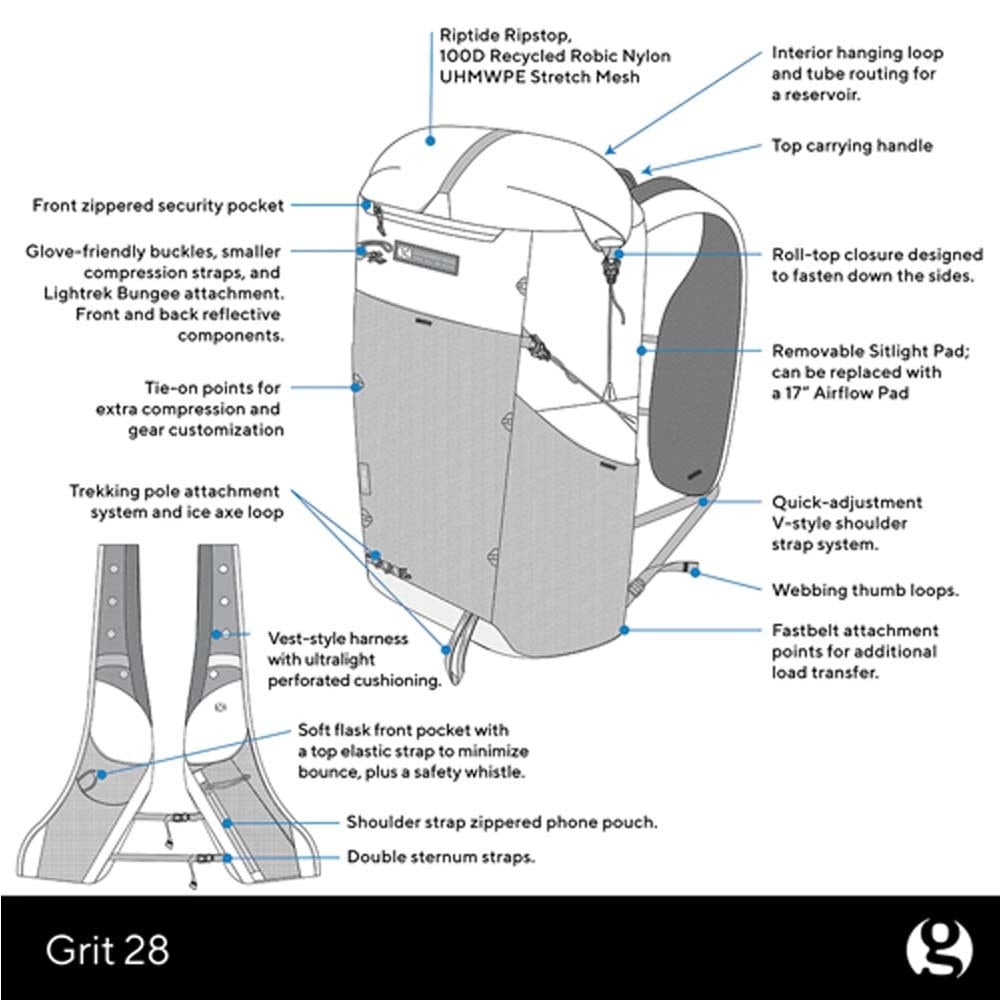 ■素材:パック部分/100D Recycled Robic Nylon(PFAS free)、 ポケット部分/UHMWPE Stretch Mesh(PFAS free)