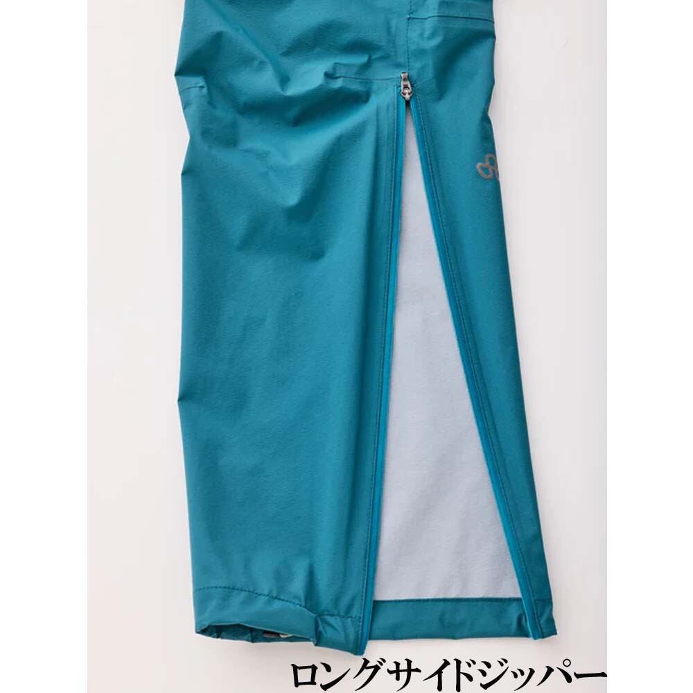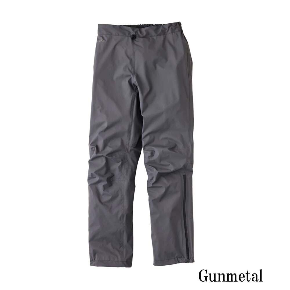 FEATHER RAIN JACKETとセットアップで着用するレインパンツで、Mサイズで140gと非常に軽量で、バックパックに常備するのに最適な一本です。